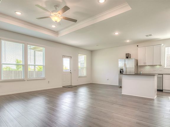 Modern fireplaceOpen floor planStainless steel appliancesFlat screen tvQuartz countertopsCovered back patioTwo car garage
