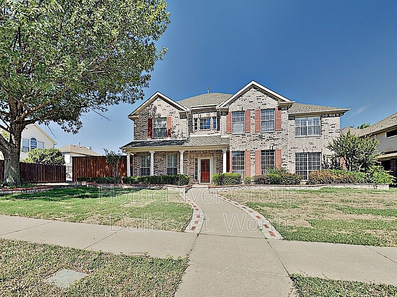 Amazing home is in a sought-after neighborhood with a community pool & playground. Excellent location, prestigious Frisco schools. It has everything you are looking for: gleaming hardwood floors, cozy fireplace, granite counters, commercial grade gas cooktop, plantation shutters&energy efficient solar screens. Open concept floorplan w-Kitchen. Featuring lots of cabinets & counters, a spacious family room overlooking the yard, an Oversized master retreat w-HIS& HER walk-in closets, dual vanities & hydro tub. A huge game room can accommodate all your toys. The downstairs bedroom can be used as a study or guest bedroom. Great size backyard with eight ft. steel posts, board-on-board fence, covered patio, and beautiful landscaping. 2.5 car garage Yard maintenance and utilities are Tenants expenses