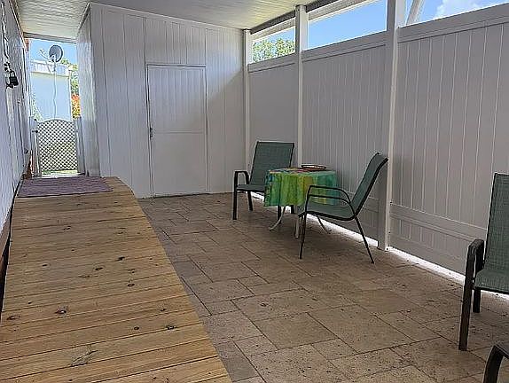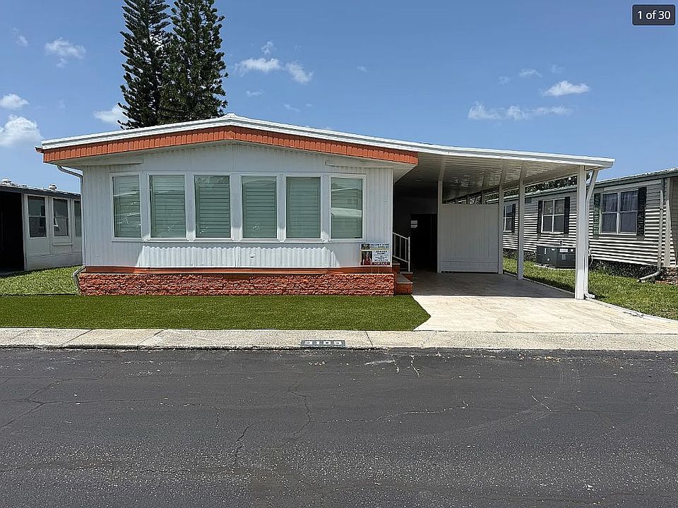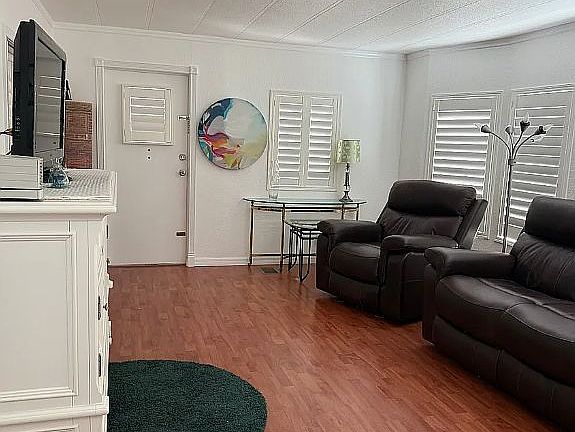 This beautifully renovated 2-bedroom, 2-bathroom home is truly move-in ready and comes partially furnished. It features brand new central air conditioning, attractive laminate flooring, crown molding, sheetrock walls, plantation shutters, new windows, roof over with warranty, a travertine patio, and a covered carport. Every detail has been thoughtfully updated to offer comfort and style. The enclosed and air-conditioned front lanai serves as a versatile bonus space-perfect for a home office, entertaining area, or even a third bedroom. A new sliding glass door connects the lanai to the spacious living room, enhancing both light and flow. The kitchen offers plenty of cabinetry on both sides, a built-in desk area, and convenient washer and dryer tucked neatly behind double doors at the end. The adjacent dining room is generously sized and features beautiful lighting and built-in storage. The guest bedroom is large and inviting, while the primary suite includes a walk-in closet along with an additional closet ideal for extra storage. A ramp under the carport adds accessibility and can easily be removed if not needed. This home is in pristine condition-every upgrade has been completed so you can simply move in and start enjoying everything the local community and nearby beaches have to offer. Located in a serene community with a clubhouse and a heated pool just steps away, this property blends comfort and convenience. Picture your evenings relaxing by the pool or hosting events at the community clubhouse in this 55 Plus neighborhood. A perfect fit for those seeking a retirement or second winter home, this mobile home offers unique features, a prime location, and a cozy vibe. Don't miss your chance to claim this lovely home as your own slice of paradise, with an attractive lot rent of $975.00 which includes trash and water. Situated in Shalimar Village, right in the heart of beautiful Port Richey, this community lies along the Gulf of Mexico, roughly 40 miles northwest of Tampa, and less than 3 miles from the beach. It's filled with friendly neighbors, diverse indoor and outdoor activities, alongside stunning landscaping. The Gulf View Square Mall is under a mile away, offering excellent shopping, dining, and entertainment. Just two miles away, discover the Werner Boyce Salt Springs State Park, featuring pristine springs over 300 feet deep-ideal for birdwatching and paddling through serene inlets and bayous of the enchanting salt marsh.