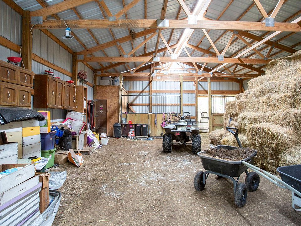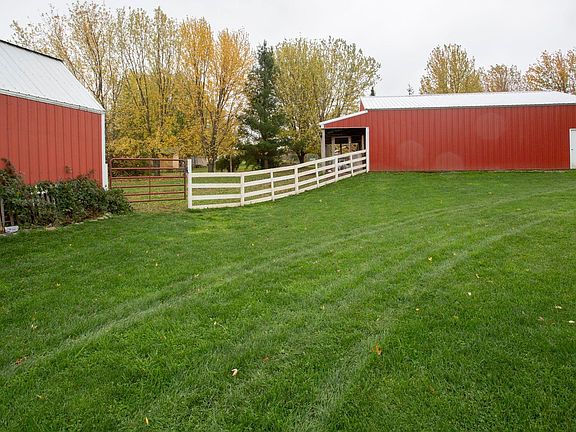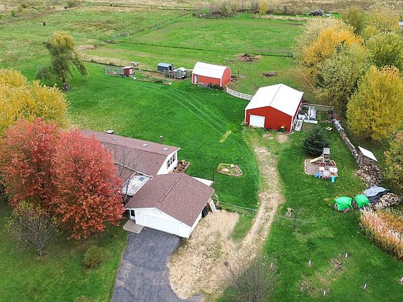 Welcome to this charming 6.44-acre hobby farm offering the perfect setup for your country lifestyle! The property is fully fenced and includes a 4-acre pasture, ideal for horses or livestock. Two barns, both with electric and water, provide excellent space for animals, storage, or projects. The 3-bedroom, 2-bath manufactured home features an owner’s suite, a large open kitchen with a center island, and a spacious family room with a cozy wood-burning fireplace. The open-concept layout makes it great for entertaining and comfortable daily living. An attached 2-car garage connected by a breezeway adds convenience and functionality. All this just 6 minutes from freeway access and about 30 minutes to the Minnesota/Wisconsin border—giving you the best of both country living and easy commuting!