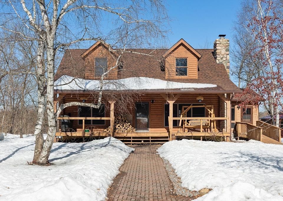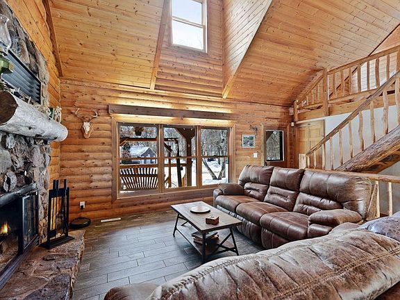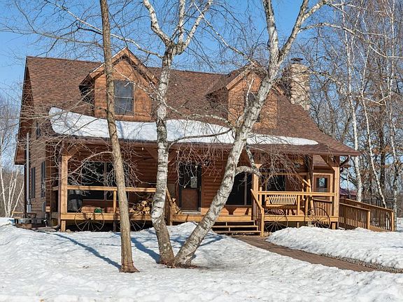 There is a clearing in the woods overlooking the river where your new log home sits, quietly waiting for you. This charming retreat begs you to unwind and swing a while on the full, covered front porch. When you're ready, head inside to a lofted, 2 story vaults and updates galore. The upper level features a master suite with private bath & walk-in closet. Look out over the open living area before heading back to the main level where you'll find a brand new kitchen & new full bathroom, new flooring throughout, 2 bedrooms and all new electrical & lighting. Downstairs you'll find another large bedroom, 3/4 bath and additional living space. Spring is calling, and there is no better way to watch your land come to life than to be surrounded by walls of windows on your wrap around 4 season porch. Take a walk on 261 feet of Rum River shore line and explore your 5 acre, wooded sanctuary.