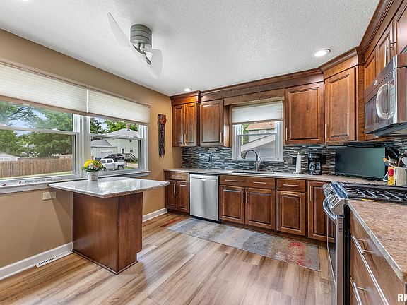 Welcome Home to this absolutely gorgeous well-cared for home ready for it's next family! This beauty checks so many of the boxes...4 bedrooms, 2 bathrooms, 2 living and entertaining areas, remodeled kitchen & baths and a heated oversized garage with plenty of storage or room for other activities and don't forget the inviting deck and patio area! The minute you step through the beautiful front door you will appreciate the quality of the workmanship and the tastefully decorated spaces which surround you. This home has been well maintained by it's owners for the past 45 years. Great updates to the kitchen and bathrooms and you will love the fact it is truly Move In Ready!! Quick possession possible. Windows approx 2006, garage added 2007, kitchen remodel 2012, main roof, HVAC, water heater approx 2013, bath remodel 2015, new electrical panel 2018, flat roof 2022