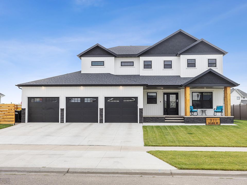 Check out the Virtual tour! This inviting 2-story home features 4 bedrooms, 4 bathrooms, and a 3-stall garage with 3,502 sq ft of comfortable living space. The main floor features: a home office, kitchen designed with quartz countertops, a walk-in pantry, and a convenient coffee bar, opening to spacious living area with a gas fireplace. The primary suite offers a balcony view to the backyard, large walk-in closet, relaxing soaker tub and tiled shower for a spa-like experience. A large mud room adds functionality, while the fully fenced yard with stamped patio, in-ground sprinklers that also go to your 2 raised garden beds creates a welcoming outdoor space. Basement bar is a blank slate ready for your final touches. Located just one block from Legacy Elementary, this home combines comfort, convenience, and location.