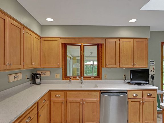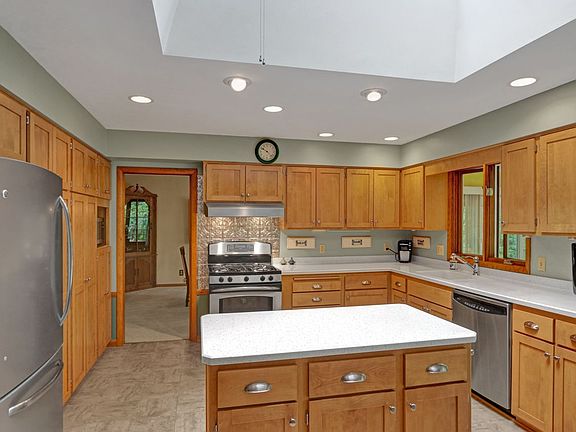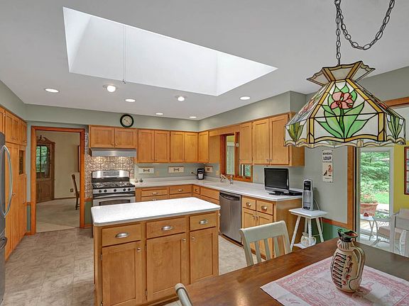 The sellers have manicured this 3/4-acre yard with tender loving care, using underground sprinkling with an autotimer. There is a beautiful assortment of healthy plants, a pond with a circulating pump, plus multi-tiered decking and a patio. It all comes together for you as you enjoy the 3 seasons sunroom with 4 sets of patio doors. It's all right off the most delightful kitchen that features a huge sky-light, luxury vinyl tile (LTV), newer appliances & counter tops and time-less birch cabinetry.There is also a great pantry unit. The bathrooms also feature LVT, comfort toilets and newer counter tops. A wood burning fireplace, custom cabinetry and real hardware flooring grace the main level family room that also overlooks the breath-taking yard. The upper level living room offers plenty of space for a grand piano and the lower level games room provides a getaway for kids and grandchildren. Other surprises include a whole-house fan, a shower and sauna in the lowest level and a huge, insulated garage with a recent overhead door and lots of natural light. Buy and enjoy!!!