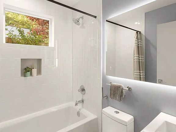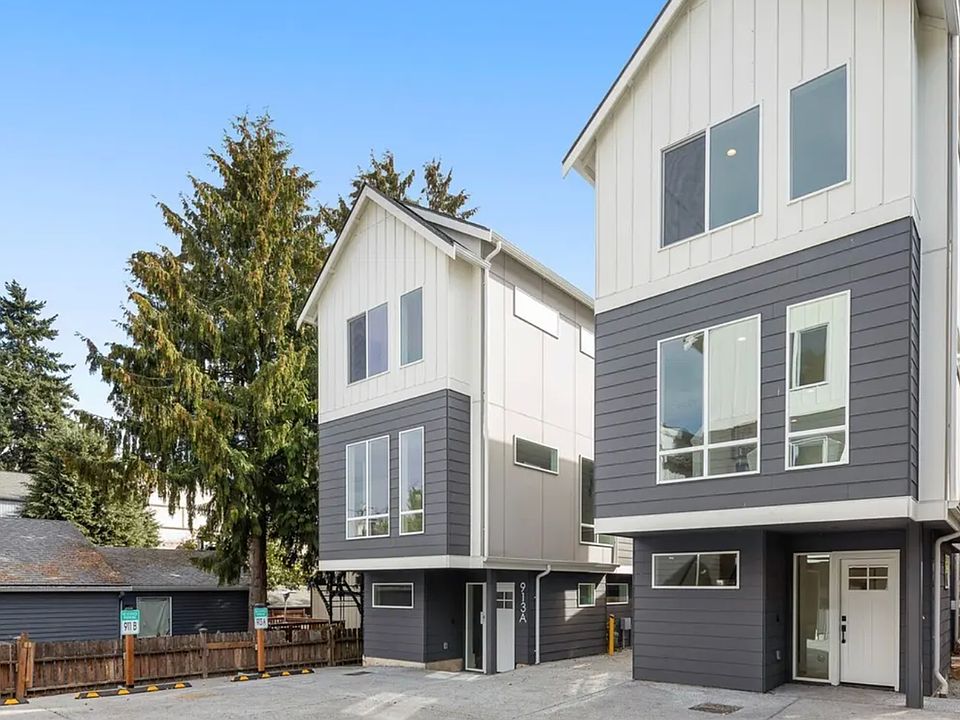 Welcome to your brand-new Greenwood home! This 3-bed, 2.5-bath modern residence stands out for its quiet middle-unit location, abundant natural light, and attractive floorplan. An open, sun-filled layout flows to a sleek kitchen with quartz counters and premium appliances. Primary suite with two additional bedrooms offers flexible space for home offices and guests. Enjoy year-round comfort with mini-split heating/cooling, dedicated off-street parking with EV charger, and enhanced security lighting for peace of mind. Minutes to parks, coffee shops, and transit, this never-lived-in home blends thoughtful design and quick access to Seattle's tech hubs.