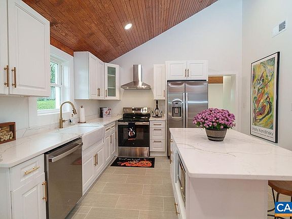 OPEN HOUSE Sat. Oct. 18th 12-2! Stunning remodel in the heart of Belmont! This beautifully updated 2-bedroom, 1-bath bungalow has been redone from the crawl space to the roof. You’ll be welcomed by fresh landscaping and a gorgeous covered front porch with wood ceilings. Inside, the vaulted wood ceilings and original hardwood floors create a warm and inviting living space. The kitchen impresses with quartz countertops, ceramic tile flooring, a large island with seating, vaulted ceilings, and new appliances. Both bedrooms feature original hardwood floors, and the fully renovated bath includes a stylish new vanity and elegant tilework. The rear of the home offers a functional laundry and mudroom with extra storage. Enjoy the private backyard with two spacious sheds (totaling 450 sq ft), perfect for hobbies or storage, plus plenty of room for pets, play, or gardening. Additional updates include new gutter guards, windows, insulation, wiring, plumbing, water heater, roof (less than 10 years), and more—making this Belmont gem truly move-in ready! Great location near Downtown, Belmont restaurants, UVA Hospital, Wegmans and 64!