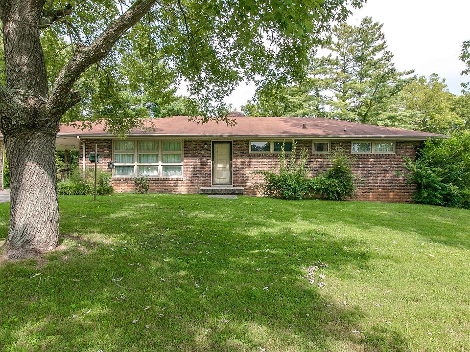 This mid century modern ranch awaits your personal touch to make it into a stunning showplace. Real hardwoods, brick fireplace, original tile, partially finished basement with huge laundry area and room for further expansion. Porte cochere leads to garage parking in the back of house. Large level lot in well established neighborhood.