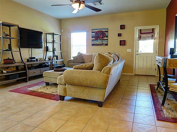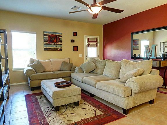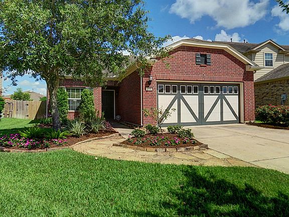 Charming one story home with open layout. Home features tile floors in entry that continue to kitchen,den & hallways; kitchen w/gas cooking,tile backsplash,breakfast bar & it opens up to family room. Master suite w/private bath & walk in closet. 2'' blinds throughout home; ceiling fans in all rooms; landscaping front & back; covered flagstone patio in backyard. Neighborhood pool is right down the street & a splash pad is being built. Great location w/easy access to 99 & 59, don't miss this one!