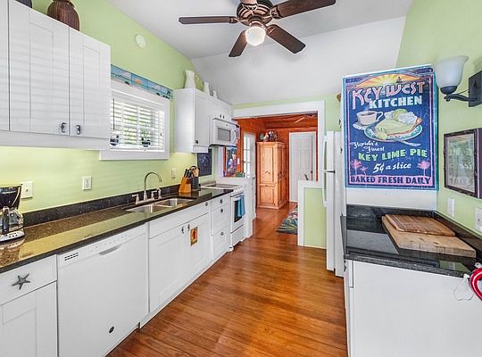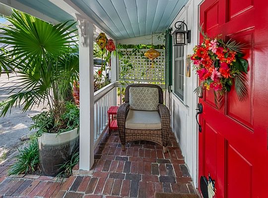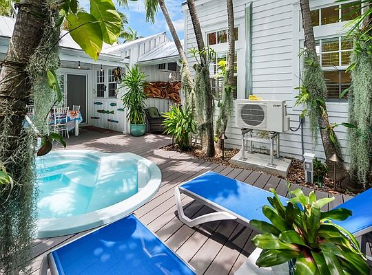 This cottage offers an open airy floor plan, cathedral ceilings, and old style pine floors and walls that give this home old Key West character!