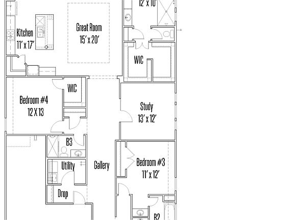 - One Living Area, Eat-in Kitchen, Kitchen Island, Breakfast Bar, Pantry, Study/Library, Game Room, Utility Room Inside, High Ceilings, Open Floorplan, Walk-In Closet(s)