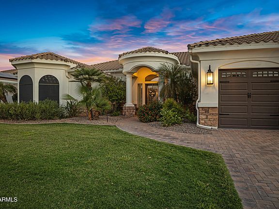 Stunning 6-Bedroom Basement Home in The Estates at McQueen. Rare opportunity to own a move-in-ready home in the highly sought-after gated community of The Estates at McQueen. This six-bedroom, four-bathroom home with a finished basement and three-car garage blends timeless design, modern upgrades, and resort-style living—all on an oversized lot in Chandler. Step inside to a grand entry with soaring ceilings and rich hardwood floors, leading to a formal living and dining area. The remodeled chef's kitchen is the heart of the home, showcasing Quartz countertops, custom cabinetry, a designer backsplash, large island, apron-front sink, built-in refrigerator, stainless steel appliances, and a gas cooktop. Just off the kitchen, the family room centers around a custom stone fireplace and... and built-in cabinetry, with an oversized multi-slide door that seamlessly connects to the backyard. The split floor plan offers privacy and flexibility. The owner's retreat occupies its own wing, complete with remodeled bath. A full guest suite sits nearby, while across the main level you'll find two additional bedrooms and a full remodeled bath. The finished basement is an entertainer's dreamfeaturing a large bonus room, wet bar, and two bedrooms with a full bathroom, perfect for family or guests. Your backyard oasis is designed for both entertaining and everyday relaxation. Enjoy a Pebble-Tec pool and spa, a spacious turf play area, outdoor kitchen, and extended covered patioideal for gatherings year-round. Recent updates include brand-new AC units and custom window shades, giving peace of mind and modern efficiency.