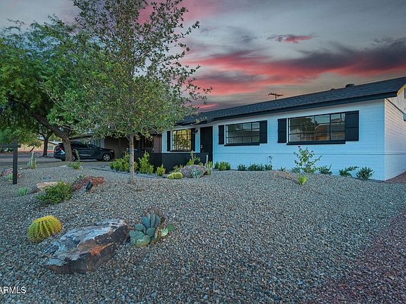 Fully Renovated North Central Phoenix Stunner — This home has just undergone a complete, top-to-bottom transformation, blending modern finishes with timeless North Central charm. Every inch has been refreshed, reimagined, and upgraded. From the street, the brand-new front landscape sets the tone — mature trees, fresh shrubs, cactus accents, and an expanded paver walkway leading to a welcoming front sitting area. Step inside to find neutral wood-look luxury vinyl plank floors throughout w/modern tiles at baths, all new baseboards and casing, and sleek single-panel interior doors that capture the perfect modern ranch aesthetic.The formal living room now shines with added recessed lighting and a ceiling fan, while the open-concept kitchen is completely rebuilt — featuring new white shaker- -cabinets, quartz counters and backsplash, an oversized gas range with a custom vent hood, stainless appliances, a breakfast bar, and an exposed stained beam for architectural flair. The family room boasts a new sliding glass door, updated lighting, and fan. This rare 4-bedroom, 3-bath layout includes a split 4th bedroom ensuite with private backyard access and a fully renovated bath with custom vanity, tiled shower, glass enclosure, and a rain shower head. The primary suite is paired with the secondary bedrooms. The hall bath is fully redone with a custom-tiled oversized tub/shower combo, and the hallway ceiling has been raised for a more open feel. Outside, the entire backyard is brand new block wall privacy, lattice-covered patio, extended paver seating area, lush turf, palm trees, cactus-filled pots, and low-maintenance plantings create the perfect entertaining space. Additional major upgrades include: all new interior and exterior paint, new dimensional shingle roof, brand-new A/C (2025), and countless cosmetic and structural improvements. Incredible front landscape lighting. Located in the sought-after Sunnyslope High School district, close to Uptown's best restaurants, pubs, and shops, with quick access to downtown and major freeways. Madison school district bus stop is 15 yards away. This isn't just a remodel it's a complete reinvention.