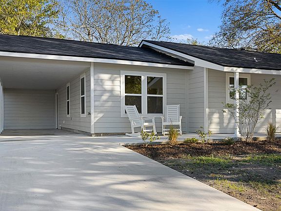 This move-in ready 3-bedroom, 2-bath ranch-style home offers a bright and modern feel just minutes from Schulenburg schools. Recent renovations completed within the past year include new Hardie Plank siding, new windows, new roof, complete spray-foam insulation, updated sewer, water and gas lines, new concrete driveway, gas water heater, and a lifetime transferable foundation warranty. Inside, you’ll enjoy vinyl plank flooring in the main living areas, carpeted bedrooms, neutral colors, and a stylish kitchen with quartz countertops, marble backsplash, abundant storage, and a gas range. The private primary suite features a spacious walk-in closet, dual vanity, and a glass/tiled walk-in shower. The secondary bedrooms and updated guest bath are located separately for added convenience. A mudroom offers easy access to the attached carport and fully fenced backyard with a gravel patio area, storage shed, mature shade trees, and a charming full-length front porch.