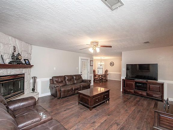 Charming Victorian style one story home situated on double corner lot in the heart of Cleveland. Great curb appeal with this porch! This home has laminate wood flooring throughout main areas and bedrooms - no carpet! Spacious family room with beautiful stone fireplace! Front kitchen includes a large breakfast bar, movable island, double ovens, electric cook top, pantry and tons of cabinets for storage; dining room with triple bay windows with beautiful trim; master bedroom with private bath with vanity area, linen storage and walk in closet; two secondary bedrooms and large second full bath; detached garage with covered breezeway area is perfect for BBQ spot. Fully fenced back yard has plenty of room for the kids (big and little), pets and a pool if you would like one! BRAND NEW ROOF JUST INSTALLED! NO RESTRICTIONS! Low taxes and home is move in ready! We are looking for a new owner!
