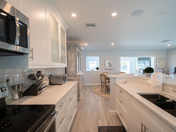 Welcome to a private oasis set canal front on a cul-de-sac just off the Marco River. The location is just about a mile from so many restaurants, including the famous SNOOK INN, and shopping! This 3 bedroom, 2 bath light filled home has been fully renovated. The professionally decorated home has neutral colors and tastefully appointed with high end furnishings throughout. All appliances are high end and in excellent condition. The kitchen is stocked with all the necessities including plates, glassware, cookware, and utensils down to the Keurig coffee maker. The temperature controlled garage is suitable for one car and plenty of extra room to store bikes. The primary bedroom is separate from the other 2 bedrooms and opens to a private patio to enjoy sunshine and solitude. The kitchen dining and living rooms are comfortable and open to one another for an open floor plan. There is a desk area open set up just off the kitchen to keep all your personal items organized and in one place. Included with this rental is a covered boat lift with a capacity hold of 16k. With direct access to the Gulf, it is only one canal off of the Marco River! Fast WIFI, and smart tvs also accompany this home. Paradise awaits!