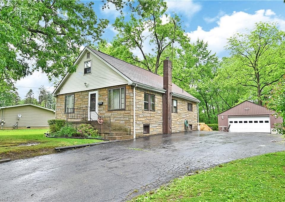 Elegant stonework wraps around this beautiful four-bedroom Liberty home, offering up a cottage like appearance and huge curb appeal that immediately draws you near! The blacktop drive ends at an oversized two car garage while lush side yards are home to relaxing benches and play areas alike. Soon, a covered, cement rear patio will be completed so you can take it all in on these warm summer days to come. Through the front entry way, a resounding living room opens to reveal carpeted flooring and cozy living space in its relaxing atmosphere. A short hall breaks away to highlight a gorgeous full first floor bath with bold red walls and tasteful updates. A pair of spacious bedrooms branch away from each direction to include the first-floor master. The charming eat-in style kitchen completes the floor with an array of built-in cabinetry that accents the wood panel walls. Rear patio entry is found at the far wall. Around the corner, the main stairways lead both to the pair of upstairs bedrooms along with basement access. Each of the second-floor rooms provide ample closet space, the larger containing a walk-in. At the basement level, rec areas join storage and an expansive, brightly lit laundry area. Call today to be first through the door!