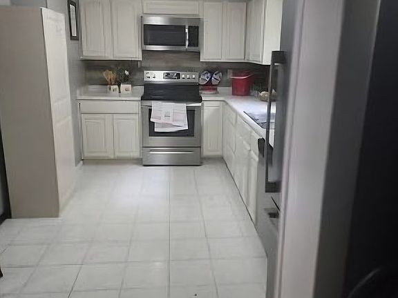 Kitchen includes stove, refrigerator, dishwasher, and microwave
