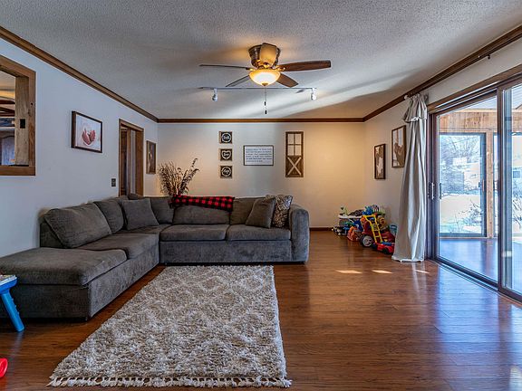 Welcome to small town living in this great home with lots of extras. Walk in the front door and head up to the spacious kitchen, dining combination with tons of storage, hardwood flooring throughout and a pantry. From there you have a large living room that leads to the 3 season porch surrounded in glass with a wood burning stove to keep the family warm that leads outside to the private built-in fire pit to enjoy with friends and family. The large master suite has a walk-in closet and private bathroom. Going downstairs it opens up to another entertaining space with gas fireplace. Also find yourself stepping into the large workout room with custom padded flooring. Don't miss out on this gem in a great community.