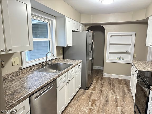 Completely & totally new inside!!! Charming ranch style home with New kitchen with all new stainless-steel appliances, including over-sized French door refrigerator, New dishwasher and microwave & new range. New cabinets and counter-tops. Refinished hardwood floors throughout. New luxury vinyl tile in the kitchen and one of the two new bathrooms. New central A/C. Right area and right price at $188,500. Agent owned. Please call today to see it!