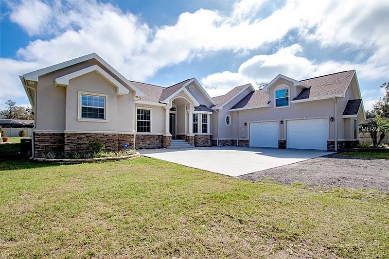 Back on market! Now's your chance! If you have been looking for a meticulously maintained sprawling home in Valrico on over an acre of land with no HOA then this is the one! With over 3,700 square feet of living space there is plenty of room for everyone. This immaculate home boasts 5 bedrooms, 4 bathrooms, a separate laundry room with lots of built in storage & a laundry sink and an oversized four car garage! This home is loaded with upgrades. Just to name a few: tray ceilings, 8 foot interior doors, crown molding, large baseboards, travertine and hand scraped wood floors, solid stone counters and wood cabinets all adorn this perfect home. The kitchen & bathrooms are fit for a king. The master bath features an oversized walk in frameless shower with a rain shower head, in addition to the separate soaking tub. The oversized garage features hook ups for an additional washer/dryer & refrigerator (with water line). The patio is covered and screened and features an outdoor kitchen which overlooks the fenced in backyard. This gorgeous home truly is a rare gem & will not last long!