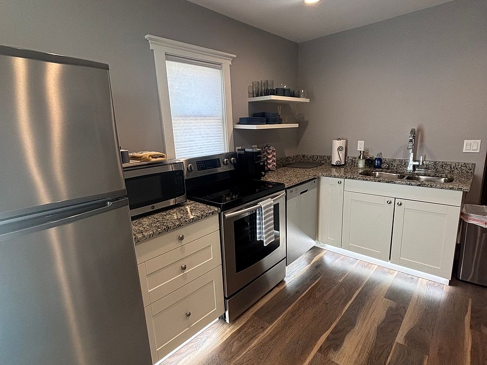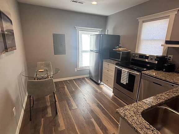 This cozy space includes a queen size bed with a washer and dryer in unit. A smart TV is included in the bedroom. Spacious kitchen with full size appliances and everything you need to get started. Small kitchen table located in the kitchen. Separate entrance on the side of building with access to a shared yard.