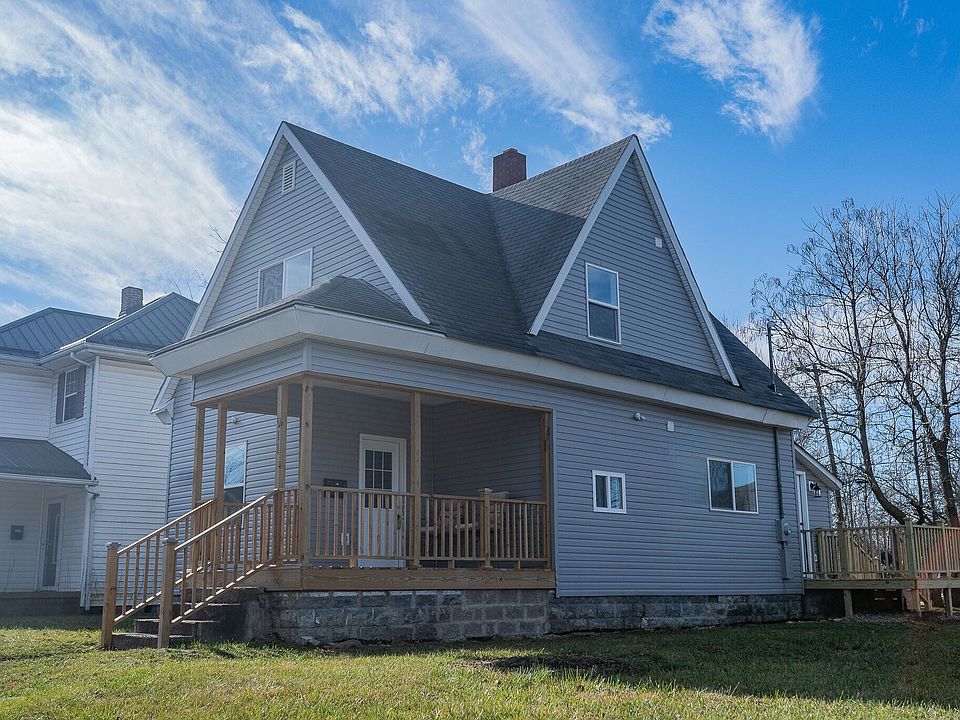 Newly renovated total electric 3 bedroom 1.5 bath home sitting on 2 city lots. Large living space welcomes you into this great home. Formal dining room for family gatherings. Kitchen includes appliances. Mud room includes laundry area on the main level with side entrance and open deck. Three bedrooms upstairs plus full bath. Detached garage. A must see home!