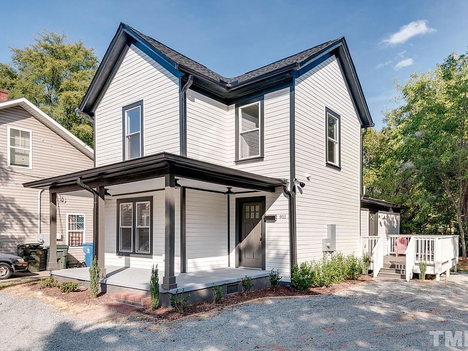 Seller offers $5,000 concession for rate buy down. Beautifully restored Farmhouse with all new fixtures & systems. Covered, gabled front porch with cast concrete floor. German board pine siding. New: windows, doors, gas pack & architectural shingle roof. New oak floors downstairs & original pine plank floors upstairs. Original stairwell banister & upstairs hall pine ceiling. OPEN living space. Kitchen has Quartz countertops + island, shaker cabinets & Whirlpool stainless steel appliances. Master Bedroom with walk-in closet, ceramic tile bathroom & double vanity. Convenient side door from Kitchen to deck & driveway. Moments from NC Central University, the Durham Freeway & the new East End Connector. Minutes to all services & the action of Downtown Durham. If you want a precious old home with all new systems, look no further!