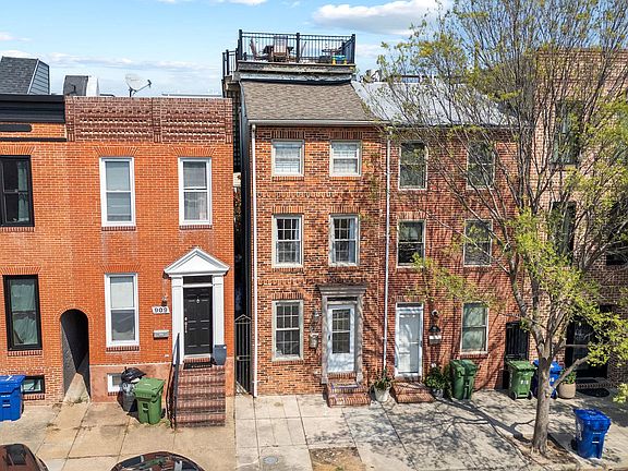 Educational Systems FCU perk: up to $2,500 toward closing costs and programs with as little as 3% down. Subject to credit approval and eligibility. -- Welcome to this exceptional three-level home located in the heart of Baltimore's vibrant Canton neighborhood. Offering 2,160 square feet of meticulously updated living space, this property perfectly blends contemporary style with historic charm. Enjoy all the modern amenities you could desire, including a gourmet kitchen equipped with stainless steel appliances, elegant granite countertops, exposed brick accents, fireplace, hardwood floors throughout, and custom lighting complemented by abundant natural light from skylights. This spacious residence boasts four bedrooms and two and a half bathrooms making it great for a family or rental income. The custom-designed staircase railing adds a sophisticated touch, leading you to an inviting roof deck, perfect for gatherings or quiet evenings, with stunning panoramic city, sunsets and water views. Situated on a charming street only three blocks from the waterfront and 1 block from Canton Square.
