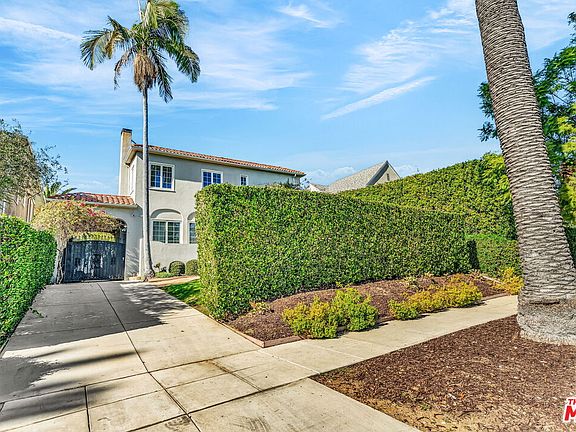 1925 Mediterranean Masterpiece in Windsor Village HPOZ. Experience timeless elegance in this 1925 Mediterranean treasure, ideally situated on a quiet street just one block from Harold Henry Park in the esteemed Windsor Village Historic Preservation Overlay Zone. A designated contributor, this 3,800-square-foot residence blends historic character with modern luxury, featuring exquisite lighting fixtures and recessed lighting throughout. The open kitchen boasts Bosch and LG appliances, double sinks, and custom cabinetry, flowing seamlessly into a bright family room with French doors that open to the lush backyard. Elegant Carrara marble baths and abundant natural light accentuate the home's refined style. The primary suite includes a remarkable walk-in closet, a sitting area, and dual French doors leading to a spacious Saltillo-tiled balcony. At the same time, original stained-glass windows adorn the staircase. A Batchelder fireplace anchors the living room, complemented by custom drapes and window treatments. The laundry room offers oversized LG washer and dryer machines. Outdoors, the private yard is designed for entertaining, with covered patios, a BBQ area, and a sparkling pool and spa. The wonderful guest house (converted garage ADU) provides additional space for guests or creative use. Gated off-street parking and mature privacy hedging complete the property. With four bedrooms, a den/office, and four baths on an 8,500+ square-foot lot, this exceptional home offers the perfect balance of elegance, comfort, and contemporary living in one of Los Angeles's most beloved historic neighborhoods. The home also includes an earthquake-bolted foundation and dual HVAC system for comfort and security. Don't miss this amazing opportunity.