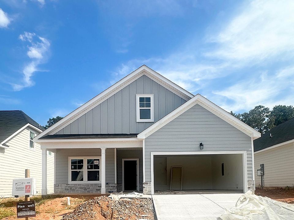 The Newport Plan by PlanDwell offers a fabulous single-level home featuring 3 bedrooms and 2 baths. With its open floor plan, this home greets you with a warm, inviting atmosphere the moment you step through the front door. The spacious family room features a cozy fireplace and seamlessly connects to an open-concept kitchen with an eat-in island and dining area. Perfect for entertaining. The kitchen showcases granite countertops and a tiled backsplash, combining style and function. The owner's suite is a private retreat with his and her sinks, a soaking tub, a separate shower, and a walk-in closet. Note: Photos shown are of a previously built home with the same plan. Colors, finishes, and features may vary. Located in The Sanctuary, this community offers a lifestyle of ease and connection with features like sidewalks, streetlights, a large community garden, and a scenic walking trail. Just minutes from Downtown Aiken, Bruce's Field, Hitchcock Woods, premier equestrian venues, shopping, and fine dining.
