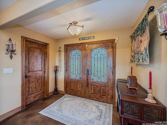 Custom-built home with media room and detached Guest Cabin nestled among Oak Trees on over (5) acres in Bulverde. Green Energy upgrades include Solar Panels, GENERAC Backup Generator, a Rainwater Collection System, Spray Foam Insulation + Standing Seam Metal Roof. Interior features include an open floor plan with a floor-to-ceiling fireplace, custom hand-built cabinets, a wet bar, a wine fridge, a built-in oven, and an induction stovetop. Home has been Pre-Inspected + Recent Appraisal @ $1.1M available for Buyers to Review.