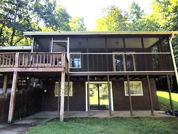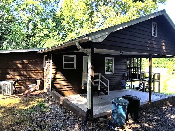 Level lot with good yard. Main level has larger living/dining room with fireplace. Main level has two bedrooms and one bath. Screen porch across the front of the house. One car carport. Basement level is finished with a bedroom, bath and living area with a private entrance. Small branch in the front yard. End of the road privacy.