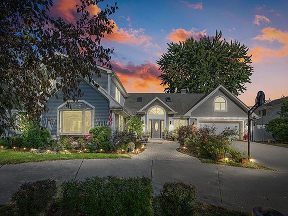 Welcome to this beautifully designed home in an ideal location, just around the corner from McCollum Park and a scenic 1.2-mile walking path! Featuring stunning custom updates, the interior boasts neutral paint colors and gleaming hardwood floors throughout. The gorgeous kitchen showcases 42" custom wood cabinetry, generous counter space with a central island and breakfast bar, stainless steel appliances, granite countertops and backsplash, and a tray ceiling adorned with recessed lighting. A custom workstation with additional cabinetry and enjoy two outdoor spaces off the kitchen, one with a quaint wood porch and the other leading to the spacious fully fenced side yard. Adjacent to the kitchen, a large dining area with charming French doors is ideal for gatherings. The inviting living room is a perfect retreat, offering a cozy gas fireplace and leads right into the light filled sunroom. Off the sunroom the third outdoor living space with a full concrete patio and access to your large storage shed. Topping off the main level is the generously sized family room, fifth bedroom and a full bathroom perfect for guests or in-law arrangements. Upstairs, the lavish primary suite features an en-suite bathroom with a custom granite-topped vanity and walk-in shower, along with a spacious walk-in closet. Three additional bedrooms down the hall share a well-appointed third full bathroom. The fully finished basement offers over 1600 sq ft, complete with a second kitchen, sixth bedroom, fourth full bathroom, and a versatile recreation room, along with convenient exterior access. The 2.5-car attached garage features epoxy floors and leads to the large concrete circular driveway. Located in a highly desirable neighborhood, you'll be only minutes away from shopping, dining, schools, parks, and easy access to I-355 and I-55. Don't miss your chance to make this extraordinary property your own!