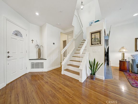 A beautifully remodeled condo in Vilamoura with one of the most private and spacious backyards in the tract. This turnkey condo has approximately 1,682 sqft with 3 bedrooms, 2.5 bathrooms, a 2 car direct access garage, luxury vinyl floors, central AC, Milgard dual pane windows and more. Your chef's kitchen has stainless steel appliances, upgraded kitchen cabinets and drawers made from Alder wood, granite countertops and recessed lights. The dining room is open to the kitchen and also has countertop seating. The living room has a remodeled fire and ice fireplace, recessed lights and a dual pane sliding glass door leading to your backyard. Upstairs you'll find the spacious primary suite which has vaulted ceilings, a ceiling fan, access to the balcony and an ensuite bathroom. The primary bathroom has dual mirrored closets, an upgraded vanity area with dual sinks and a remodeled walk-in shower. The main guest bedroom features vaulted ceilings, a ceiling fan, a large walk-in closet with mirrored doors and an ensuite bathroom. The ensuite guest bathroom is remodeled with an upgraded vanity area as well as a remodeled shower tub combo. The second guest bedroom has recessed lights and access to the balcony that is shared with the primary suite. There is also a custom workstation that's perfect for a casual office setup in the upstairs hallway between all of the bedrooms. Downstairs is a half bath for guests and a laundry closet adjacent to the garage. Your backyard oasis will be the envy of all neighbors with plenty of room to entertain. The backyard has terraced landscaped garden boxes with sprinkler system, artificial grass and a patio area that has plenty of space for a large outdoor dining table. There is also a custom built garden storage box adjacent to the AC unit as well as a door at the back of the fence thats perfect for walking your pets. The garage has plenty of storage plus a water softener system. Vilamoura has no mello-roos and the community has its own private pool and spa. Nearby you'll find the Rancho San Clemente Sports Park, hiking trails, Lifetime Fitness, multiple shopping centers and the San Clemente Pier.