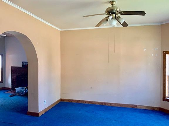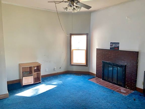 Entrance: Wrap around front porch opens to dining room or living room. Victorian design, thermopane windows, brick stairs. Foyer: Open staircase leads to upper floor, half bath tucked near the stairs. Living Room: Carpet, painted walls, large front window, arched entry to family room. Family Room: Fireplace, painted walls, ceiling fan. Large opening to dining room. Dining Room: Carpet, painted walls, side door leads to front porch. Kitchen: Maple cabinets, white sink, laminate floor, white trim, painted walls. Upstairs: Sitting room has an alcove area for computer, etc Bedroom: Painted and wallpaper, carpet floor, white trim Bedroom: Painted and wallpaper, carpet floor, white trim Bedroom: Painted and wallpaper, carpet floor, white trim. Even though this house has CAC the upstairs bedrooms cool more efficiently with the window air that is in them now. Bath: White fixtures, painted walls, vinyl floor, room off the bath for storage or even a cute work out room. Basement: Gas forced air, central air and gas water heater. Big yard in back, long drive for off street parking, very large garage has additional storage!