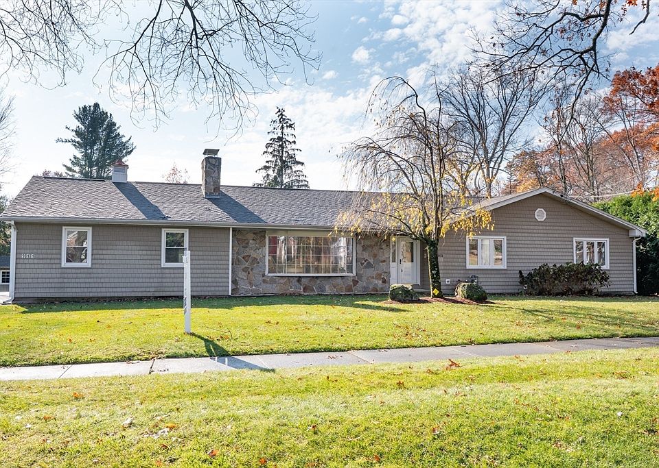 HIGHEST AND BEST BY THURS, 11/13 BY 3PM....New listing in LONGMEADOW! This charming rambling ranch offers comfort, character, and convenience in the heart of Longmeadow! This home features 3 bedrooms, 2 full baths, and hardwood floors throughout most of the home. Enjoy a spacious living room with a stunning stone fireplace and a large bow window that fills the space with natural light. This home also features a sunken family room off the kitchen and dining room. The expansive 3-season sunroom with 3 sliding glass doors to the back yard, offers a perfect spot to relax or could easily be converted for year round living. Additional highlights include central air, central vac, and a fully waterproofed basement ready for future expansion. Outside you will find a level yard with sprinkler system, storage shed, and a two-car garage with ample driveway parking-all just steps from the Longmeadow shops and local amenities.