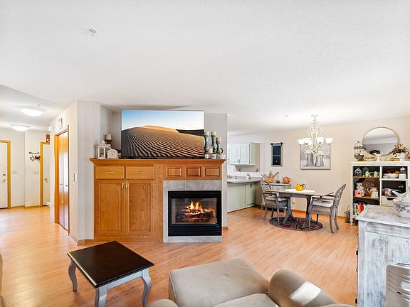 Fantastic former model that is open and spacious featuring wood floors, two-sided fireplace, kitchen/dining area, breakfast bar, walk in pantry, upper level laundry, upgraded stainless appliances, upper level loft, primary bedroom with walk in closet, second oversized bedroom, upper level full bath! Great location and close to shopping and parks! Rentals are allowed.
