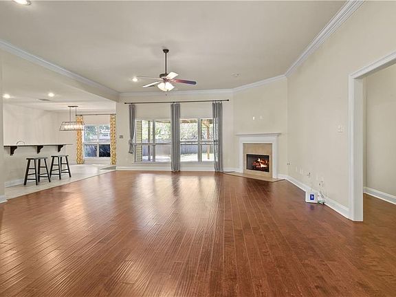 Immaculately Maintained Home Just Minutes from Downtown Covington and Local Amenities! This Home Offers a Well Designed and Versatile Floorplan with 4 Bedrooms / 2 Bathrooms with an Open-Concept Living Room/Kitchen! Walking Into Your New Home, You Will Immediately Notice the Large Living Room with Gas Fireplace, Wood Floors, and Tall Ceilings, and LOTS of Natural Light! Overlooking the Living Room is your Kitchen with Large Center Island and 'Breakfast Bar' with Stainless Appliances, Granite Countertops, Gas Stove, Under-Cabinet Lighting, Large Pantry, and Upgraded 16'' Tile Flooring! Large Primary Suite Adjoining a Primary Bathroom with Walk-In Shower, Jetted Tub, Dual Vanities, and 2 Walk-In Closets! Oversized and Totally Fenced Backyard with 20x25 Expanded/Covered Patio and Workshop! Other Amenities Include: Tankless Water Heater, 2-Car Attached Garage, Community Pool, and Flood Zone C!