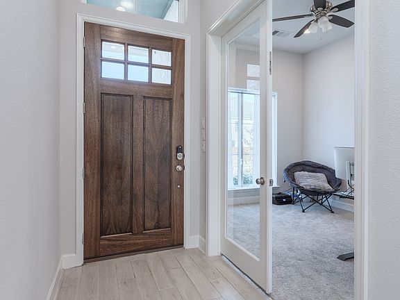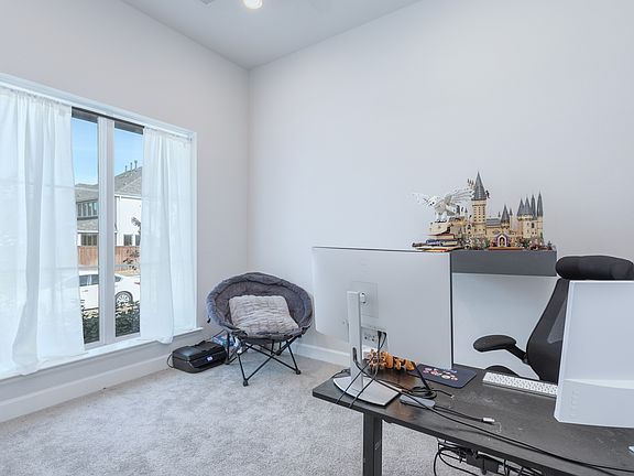Stunning 1-story, 4 bedroom Perry Home + Private Study, 3.5 Baths, & Modern Finishes all thoughtfully arranged across 2,737 sf & 12' ceilings elegantly designed living space. Built in 2022, this meticulously maintained home seamlessly blends modern convenience with timeless sophistication. Gourmet Kitchen offers high-end finishes, generous counter space, a corner walk-in pantry, and an island with built-in seating, perfect for culinary endeavors or casual dining. Features a dining area flowing into the spacious open floor plan, highlighted by a stunning wall of windows that fill the space with natural light. The expansive primary bedroom is bathed in natural light, while the ensuite bathroom offers dual vanities, a garden tub, a separate glass-enclosed shower, & two large walk-in closets. A private guest suite with its own full bathroom enhances the home's versatility & comfort with 2 additional bedrooms, a bath, and 1 half bath. The covered backyard patio is ideal for relaxing or entertaining, while the 3-car garage provides ample storage & convenience. Conveniently located south of 380 with easy access to 720, this property offers the perfect balance of accessibility and tranquility. The community features a pool, adding to the lifestyle appeal of this remarkable home. Move-in ready and impeccably maintained, this home is an opportunity you won't want to miss. Schedule your private showing today! Refrigerator stays.