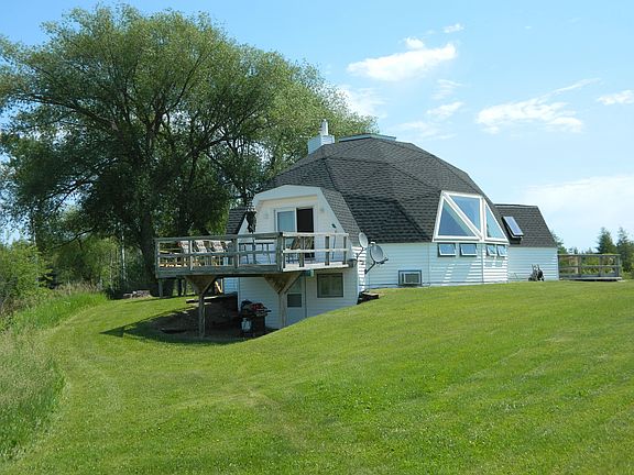 Unique dome home with a lot of character, on 44 acres. Home has hydronic heat, two zone heating system, new roof 2 years ago, many new windows and doors, sauna, gas fireplace. Maintenance free decking. Detached 24 x 36 garage is heated and there is a 14 x 33 canopy shed. Pool table and some furniture items can stay with the home, as well as some yard equipment .