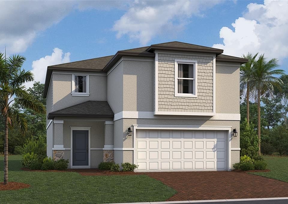 Under Construction. ****SPECIAL FINANCING AVAILABLE FOR A LIMITED TIME ONLY FROM PREFERRED LENDER. RESTRICTIONS APPLY, FOR QUALIFIED BUYERS, SUBJECT TO APPLICABLE TERMS AND CONDITIONS. SUBJECT TO CHANGE WITHOUT NOTICE**** Inspiration at Southpointe lives up to its name. This elegant two-story home offers 2,593 square feet of thoughtfully designed space, featuring 4 bedrooms, 2.5 bathrooms, a versatile den, and a two-car garage. Step through the front door into a welcoming foyer, where a staircase leads to the second floor. Just beyond, you’ll find the den, and a convenient powder room, a perfect space for work or relaxation. Continue into the heart of the home, where the great room seamlessly connects to a chef-inspired kitchen with a spacious island. Past the kitchen, a charming café area opens out through sliding glass doors to the lanai, creating an ideal setting for indoor-outdoor living. Upstairs, all four bedrooms await. Three secondary bedrooms share a well-appointed bathroom, while the laundry room is thoughtfully located on this level for convenience. The primary suite, positioned at the rear of the home for privacy, offers a serene retreat with a double vanity, walk-in closet, and private water closet.