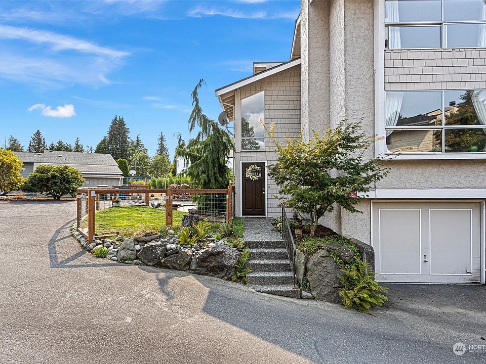 Charming 2 bed/1bath corner end unit in desirable Edmonds location. Walk upstairs to the main level to a spacious living room, a cozy wood fireplace, large windows for extra daylight, dining area, kitchen & sliding glass doors leading to a deck, great for entertaining. Upper level has a closet/pantry, 2 bedrooms & full bath. Lower level has a single garage, W/D & plenty of storage space. Fully fenced yard with patio, garden area, landscaped front & back yard, cul-de-sac, dead end street, RV, individual & common parking. New floors & paint. Quiet neighborhood consisting of 6 units. No HOA dues, rental cap, special assessments or pet restrictions. Close to I-5, Downtown Edmonds, shopping, parks, top rated schools, hospital, golf & much more.