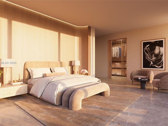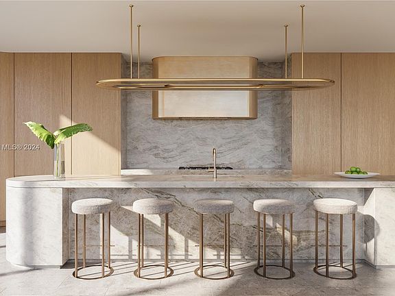 Discover luxury living in this half-floor unit at Bay Harbor Islands' most exclusive new development. This residence boasts 35 feet of unobstructed water and golf course views, with interiors graced by honed Patterned Vanilla Spider Marble flooring throughout. The kitchen is equipped with Gaggenau appliances and Taj Mahal countertops, ideal for gourmet enthusiasts. This residence offers 3 bedrooms, 3 bathrooms, a Family Room, and an elegant powder room, with every corner reflecting extreme attention to detail Including a wine wall. The bathrooms showcase exquisite finishes, from travertine floors and leather walls in the primary to Crema di Oro and Carrara marble in the secondary baths. Residents enjoy access to boat slips and a yacht concierge at the exclusive, residents-only yacht club