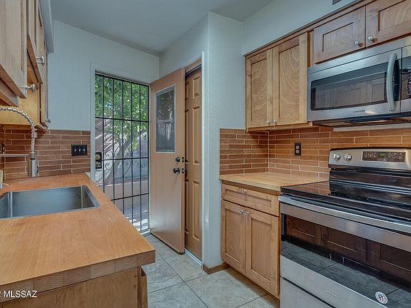 Nestled in the perfect Oro Valley location neighboring Pusch Ridge, this charming, masonry construction, townhouse welcomes you at every turn! Pride of ownership abounds with attention to even the smallest of details. The kitchen is adorned in custom cabinetry, butcher block counter tops, and stylish fixtures! The backyard is a private retreat with mature landscaping giving a sense of peace and calm. This home feels a world away but is in the center of it all with premium amenities just moments away! The bedroom suites are expansive and include ceiling fans throughout. Don't miss the bee hive fire place, recent exterior repaint, sparkling community pool, and so much more! Truly a special offering here! Welcome Home!