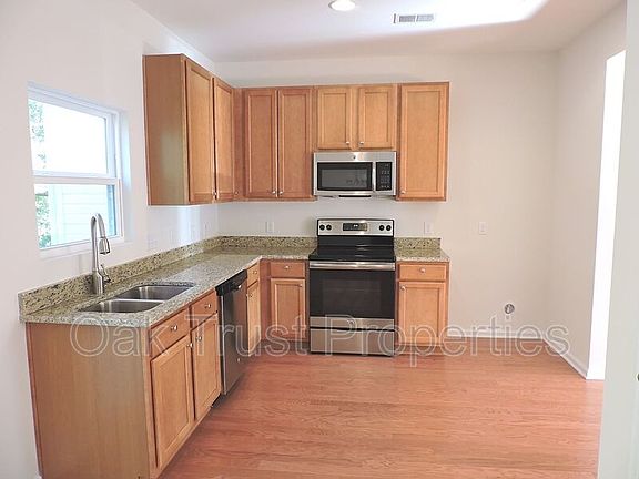 Charming 3-bedroom, 2.5-bath townhome now available in the Tranquil Hill Plantation community of Ladson! Ideally situated near military bases, the industrial park at Palmetto Commerce Parkway, Boeing, and Bosch, this home is perfect for convenient living. The first floor features hardwood flooring, an eat-in kitchen with granite countertops and stainless steel appliances, and a spacious patio with an extra storage closet. Upstairs, the primary bedroom offers a vaulted ceiling with a ceiling fan, a walk-in closet, and a private bath. Two additional bedrooms and a laundry room are also located on the upper level. Washer and dryer are included in "as is" condition. Lawn maintenance is included!