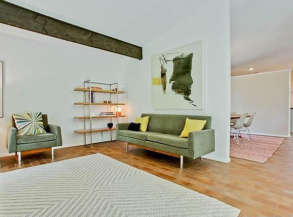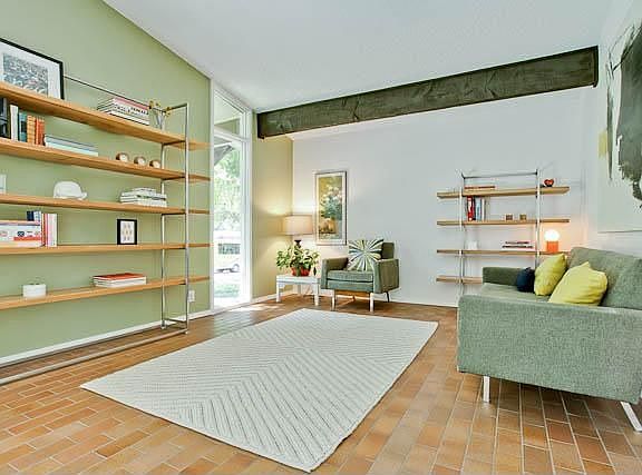 Stunning mid-century modern built by Ju-Nel is within walking distance of WR Elem. The home features signature floor-to-ceiling windows, vaulted ceilings, exposed beams, open floor plan. It has been meticulously updated w cork, brick & Bisazza tile flooring, Silestone countertops, mosaic tile backsplash, stone bath counters, huge master suite w 2 walk-in closets & Fr. doors to beautiful backyard. Recessed lighting, low e windows, & zoned HVAC.