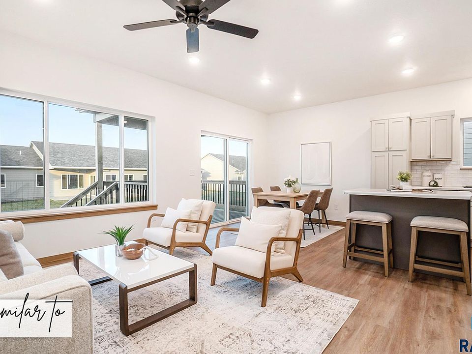 Brand new ranch style home with 3 bedrooms on the main level located on the West side of Sioux Falls. This home features a finished main level including quartz tops, painted kitchen cabinets, a primary suite with a walk in shower and closet, main level laundry, kitchen pantry, kitchen tile backsplash, Whirlpool appliance package, covered deck and much more!