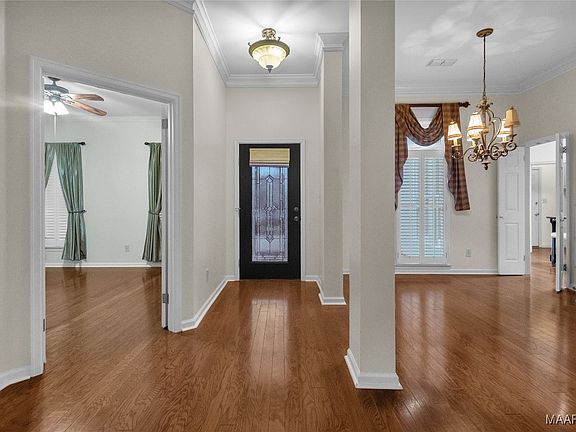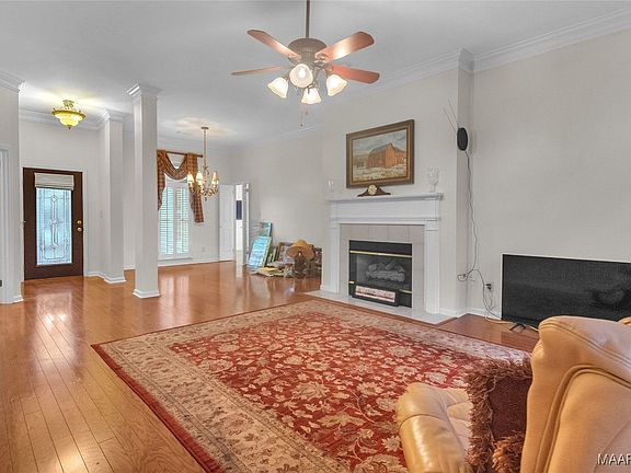 WATER AND GOLF VIEWS on Beautiful Green Chase in Towne Lake! Discover the perfect blend of comfort and scenery in this beautiful 3-bedroom, 2-bath home. Designed with a split floorplan, the layout offers privacy and flow, highlighted by a spacious family room with a cozy gas fireplace ideal for relaxing or entertaining. The primary suite is a true retreat, featuring an updated bath with a luxurious soaking tub, separate shower, dual vanities, and a custom built walk-in closet offering exceptional storage and organization. Enjoy cooking in the warm, inviting kitchen complete with a Wolf gas/electric range, new hood, work island and a breakfast nook. A formal dining room adds elegance for gatherings and special occasions. Step outside to your own backyard oasis with a sparkling salt water pool and stunning lake and golf-front views, creating a one-of-a-kind setting to unwind or entertain. Additional features include a 2-car garage and charming curb appeal, making this Towne Lake home an exceptional find. Towne Lake is so conveniently located just off I-85, Atlanta Hwy and Chantilly Parkway and so close to The Shoppes of Eastchase, restaurants, hospitals and only minutes to Maxwell and Gunter Air Force Bases! Towne Lake is a covenant/HOA community.
