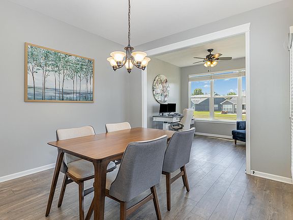 2 Bedrooms, 2 Bath and office/den space in this open concept LIKE NEW paired villa! Enjoy nearly 1,900 square feet and views of the pond and walking trail from your sunroom! 42 inch cabinets, a MASSIVE island, tiled backsplash in the kitchen. All Appliances Remain! 2 generous sized bedrooms. The main suite has a large walk-in closet and bathroom! Both bathrooms feature custom glass shower doors. There is built-in HDMI and USB outlets in the home! Furnace recently had a humidifier installed to control the humidity to stay comfortable year-round! Finished garage so check that off the list! Nothing to do but move in, schedule your showing today!