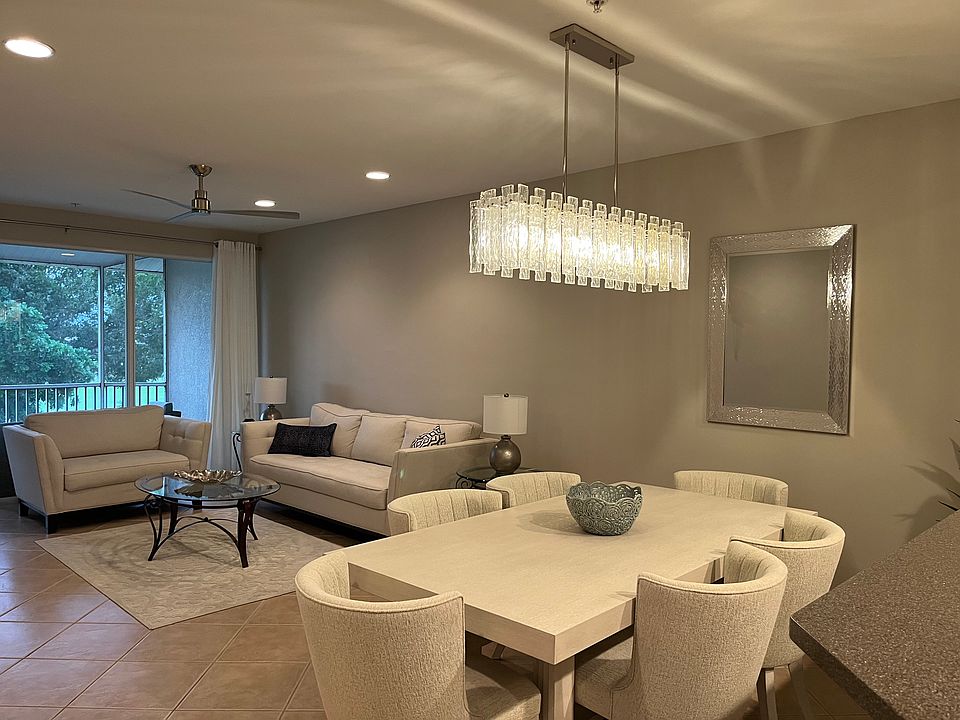 Escape to paradise in this beautifully decorated 2-bedroom + den/bedroom condo in gorgeous Lely Resort, Naples. Enjoy golf course and lake views, high ceilings, and all the comforts of home including new appliances, a new dining table, and a cozy new couch. Perfect for families, couples, or remote workers looking for a peaceful Florida getaway. Condo has a pool and hot tub right out the door. In addition, there is Player's Club access with a $400 one time transfer fee. This includes 3 pools, spa, fitness center, restaurants, pickleball, tennis courts, and so much more. Seasonal rental also available. January $6500; February-April $7500 a month, October-December $4800 a month, May-September 4,000 a month.